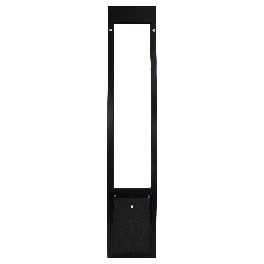 - Extruded aluminum frame made for sliding glass door tracks at least 1” thick (for vinyl sliding doors, see the Dragon Pet Door for Vinyl Sliders)