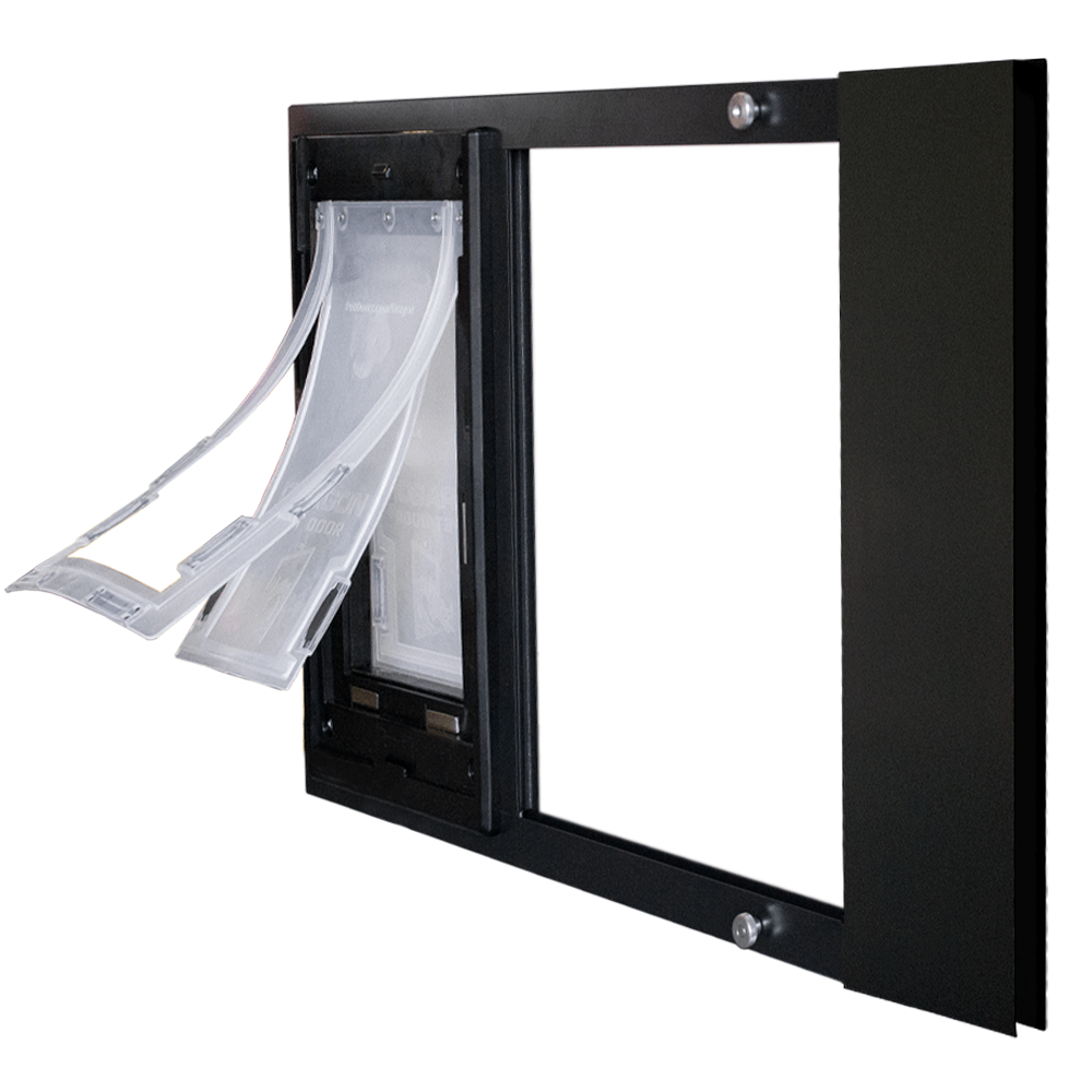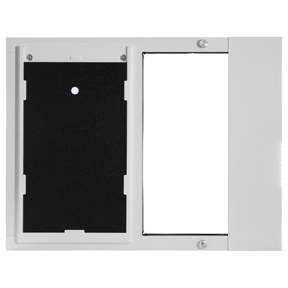 The Dragon pet door for sliding sash windows allows you to enjoy quick installation and excellent weather resistance at a low cost. With seven different width adjustment ranges, this Dragon window panel installs in sash windows of all sizes. The simple, spring-loaded design allows for quick and secure installation right into your window track. The Dragon window sash features a two-piece flap to keep the entire pet door opening sealed, allowing your pets to come and go while keeping your home insulated. There are other installation types for the Dragon Pet Door. Already have a Dragon pet door? See which replacement flap fits your door.
