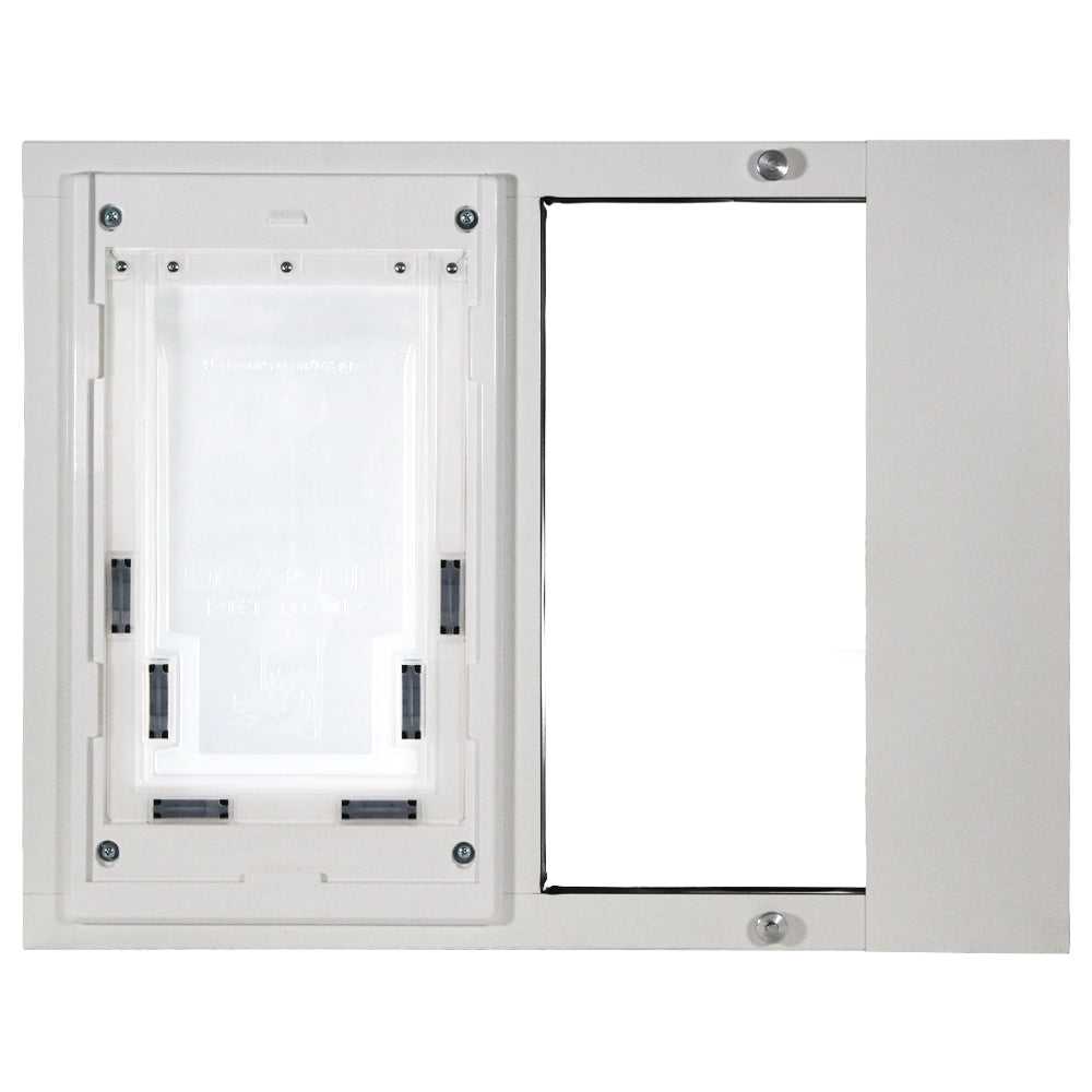 - Cost-effective panel insert with built-in pet door for sash windows