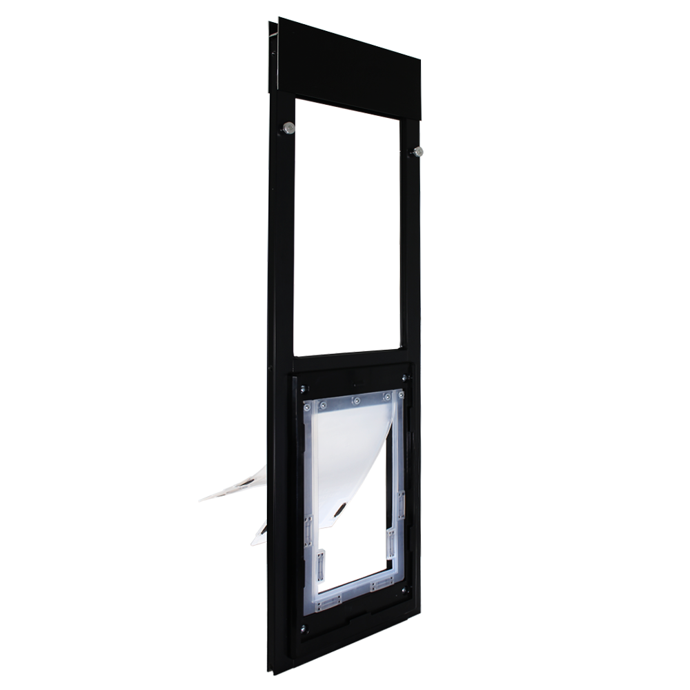 The Dragon Pet Door for Windows is an economically friendly window panel insert for sideways-sliding windows. It features an efficient two-piece Dragon pet flap for excellent sealing value. Available in three height adjustment ranges, the Dragon Window Pet Door fits window tracks of all sizes. These window panels install with a simple spring-loaded adjustment method, allowing you to quickly take them in and out of your window track—no drilling or cutting required. There are other installation types for the Dragon Pet Door. Already have a Dragon pet door? See which replacement flap fits your door.