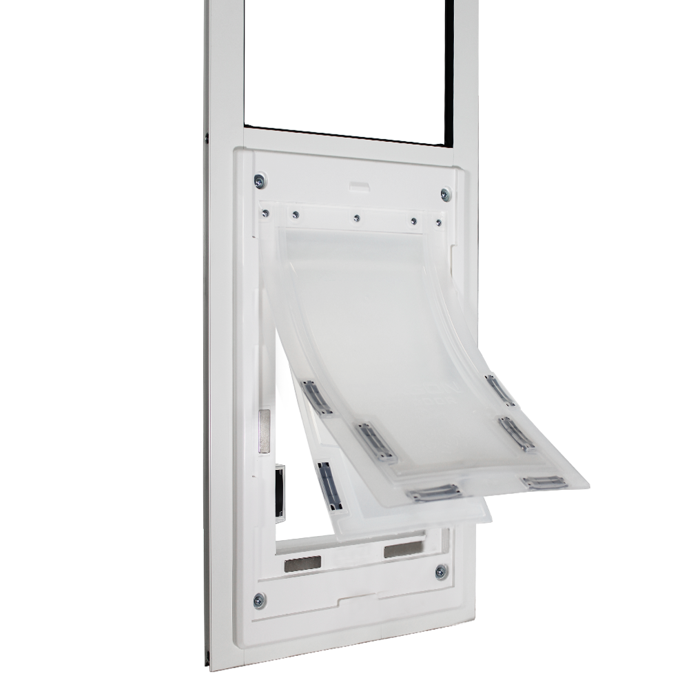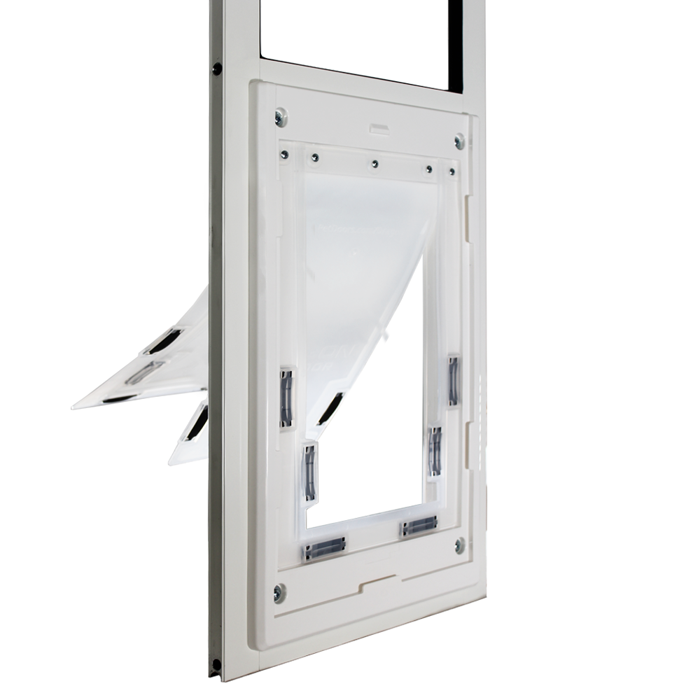 - Two-piece flap design covers the entire pet door opening for improved sealing