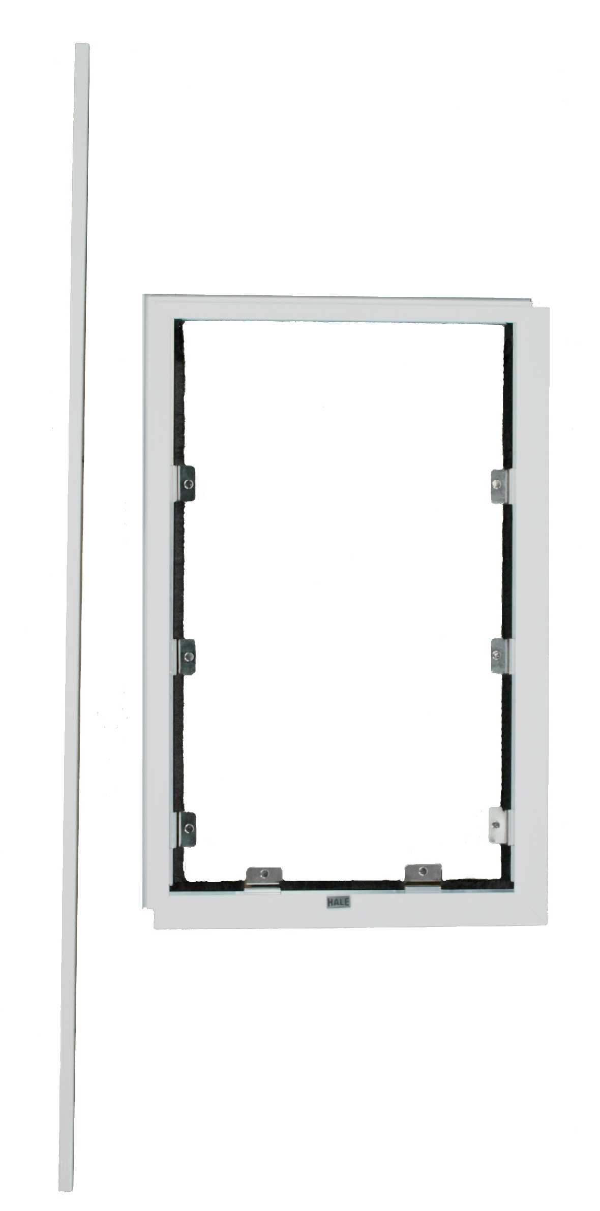 Option 2. For frames over 1" you can choose the custom cut version (used mainly for situations such as screen porches or sidelights) where the Universal model would not work. In this case, Hale will trim off one of the flanges on the channel in order to accommodate very thick framing. The remaining flange is 3/4" long and 3/4" deep. You can also choose a four-sided flange for framed holes (this is the only one that can have a locking cover which is purchased separately). These are considered custom, special order and all returns will only receive a 50% credit toward the purchase of another Hale Pet Door.