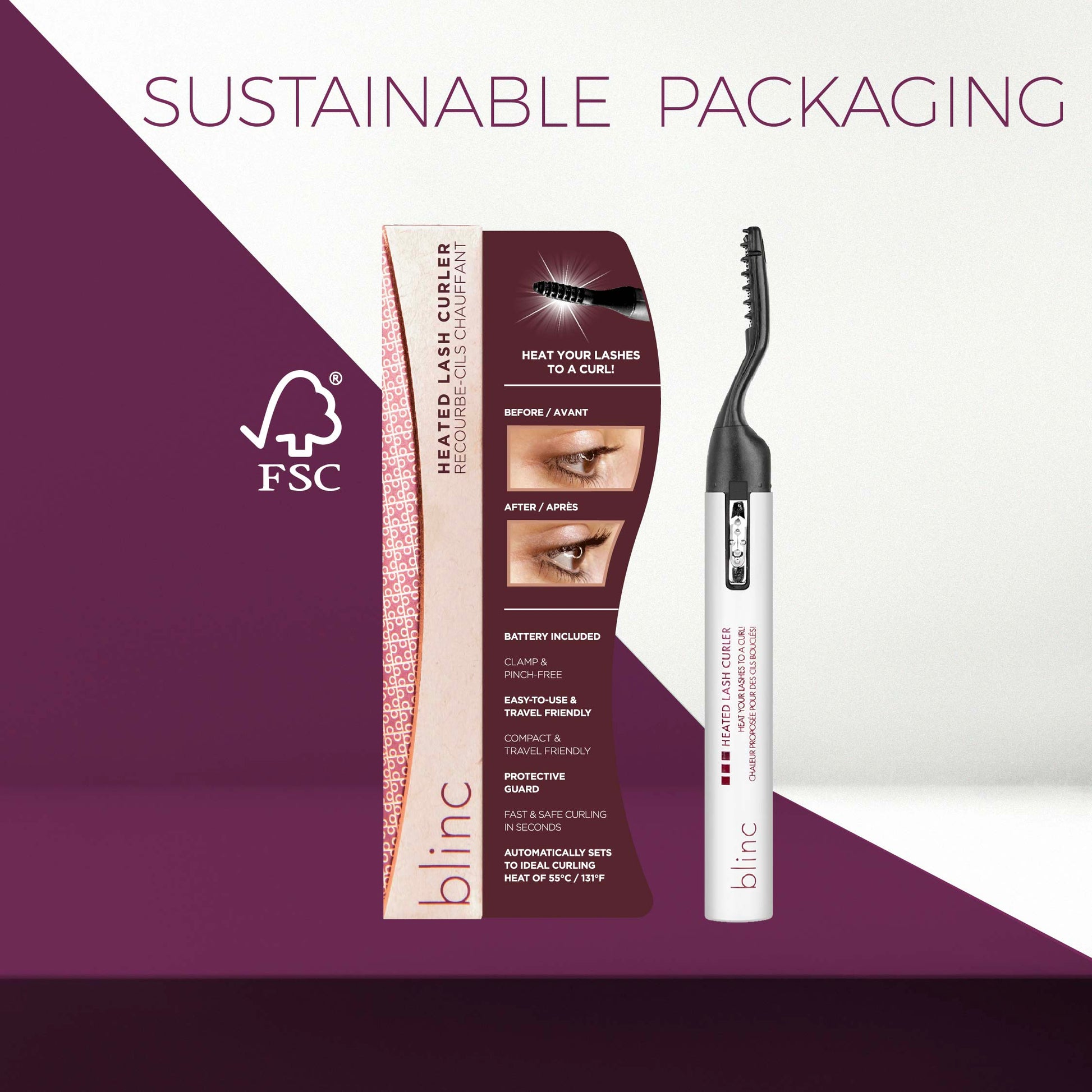 Blinc's heated lash curler is simple to use and shapes lashes in seconds. Its innovative design delivers a precise amount of heat, while making it easy to reach even the tiniest lashes. Your lashes will show extravagant curves that will last all day!