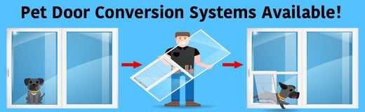 - Replaces original pane of a sliding door, French door, or sidelight with a sliding glass door with dog door built-in